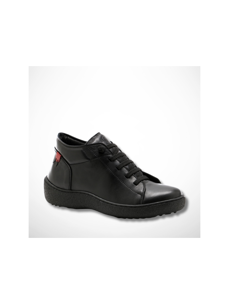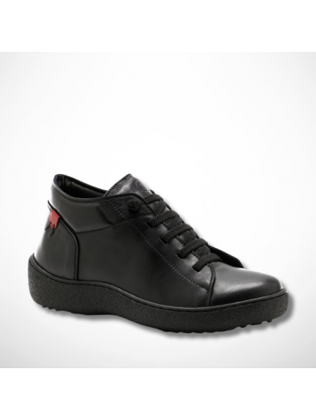 Czarne trzewiki damskie skórzane sznurowane Manitu 850152-01