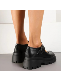 Stylowe półbuty damskie czarne z eko skóry na platformie zapinane na sprzączkę 2353B