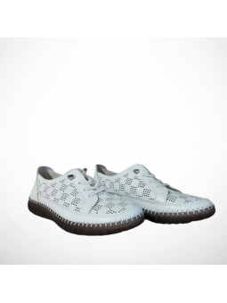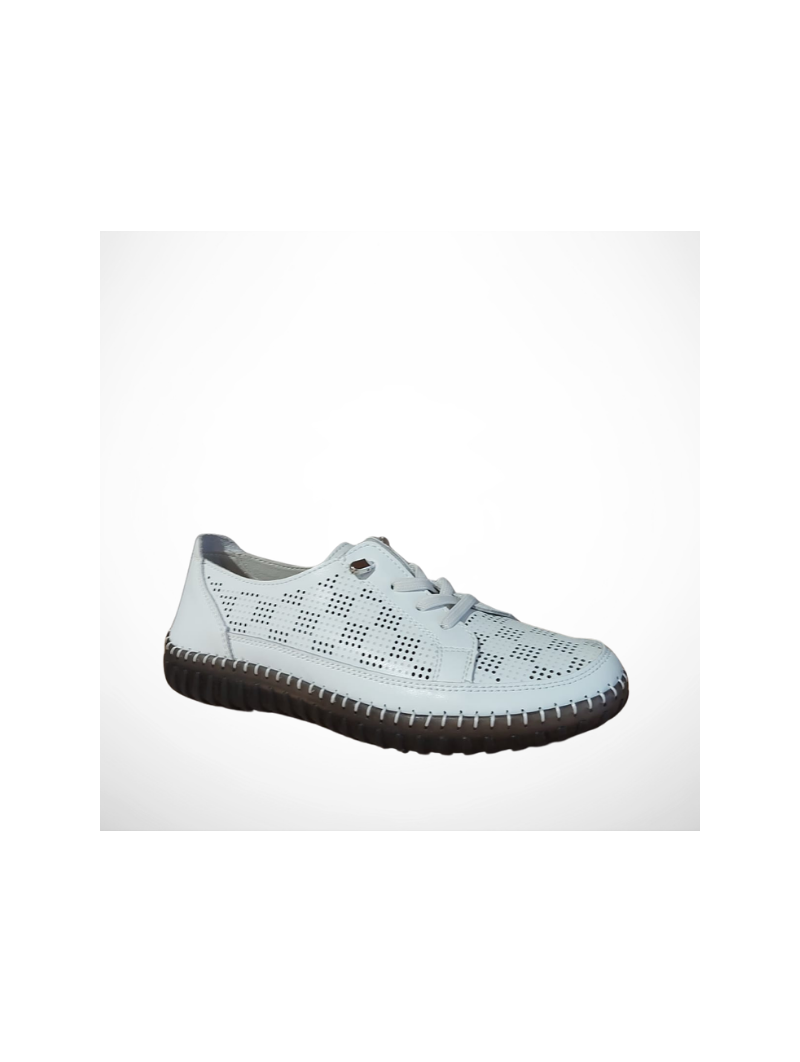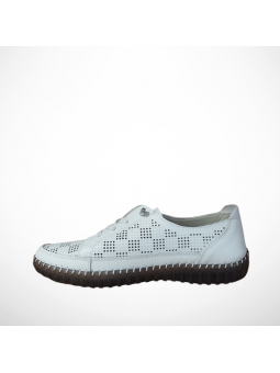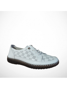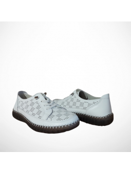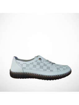 Lekkie półbuty damskie wykonane zostały z wysokiej jakości skóry naturalnej zarówno na zewnątrz, jak i wewnątrz. Cholewka wyróżnia się precyzyjnymi ażurowymi perforacjami, które nadają obuwiu subtelny charakter i jednocześnie poprawiają przewiewność.