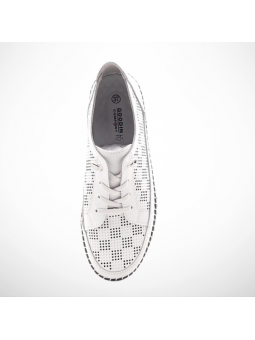 Białe ażurowe półbuty damskie z naturalnej skóry na elastycznej, płaskiej podeszwie Goodin GDXW-1028