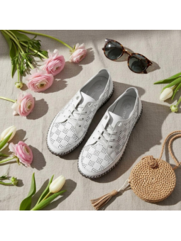 Minimalistyczna biel w zestawieniu z ażurowym wzorem i brązową podeszwą tworzy świeży, nowoczesny efekt. To model, który dodaje lekkości każdej stylizacji i podkreśla jej kobiecy, swobodny charakter.