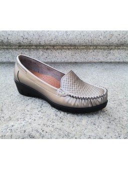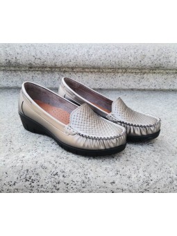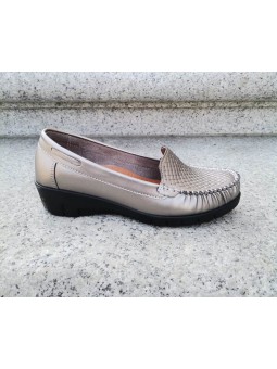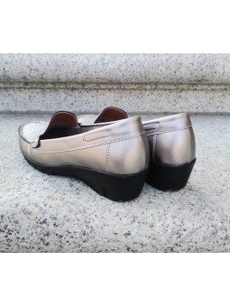 Platynowe półbuty damskie z eko skóry i wkładką skórzaną na wygodnym niskim klinie marki T.Sokolski WHW22-257