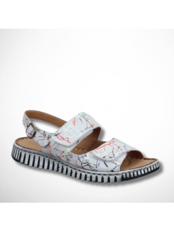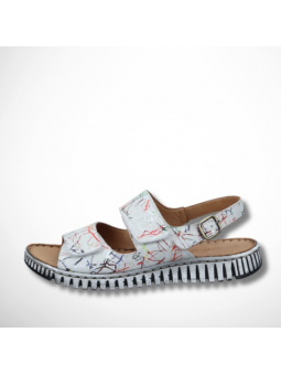 Sandały zapinane są na praktyczny rzep, dodatkowo na paseczku z tyłu zastosowano sprzączkę, dla lepszego dopasowania obuwia do stopy.