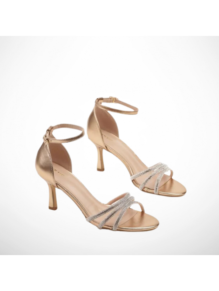 Eleganckie złote sandały damskie na szpilce z ekologicznej skóry z ozdobnymi cyrkoniami Vices 2335B