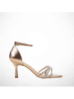 Sandały wykonane zostały z imitacji skóry z ozdobnymi paseczkami w postaci błyszczących cyrkonii, które dodają całości blasku oraz przyciągają wzrok. Zapięcie na sprzączkę wokół kostki, dodaje stylu, idealnie komponując się z eleganckimi stylizacjami. Zakryta pięta nadaje modelowi klasycznego charakteru i zapewnia lepsze dopasowanie oraz stabilność podczas chodzenia. Smukła szpilka optycznie wydłuża nogi i dodaje kobiecego wdzięku, jednocześnie oferując stabilność na eleganckich eventach.