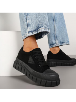 Czarne buty sportowe - sneakersy damskie zamszowe na grubej podeszwie Vices 2343B