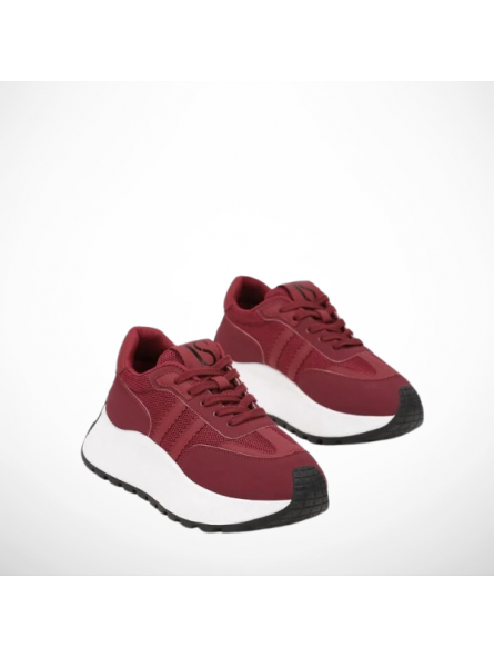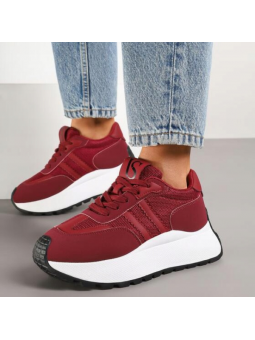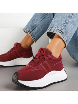 Stylowe buty sportowe - sneakersy w bordowym kolorze na platformie 2360B