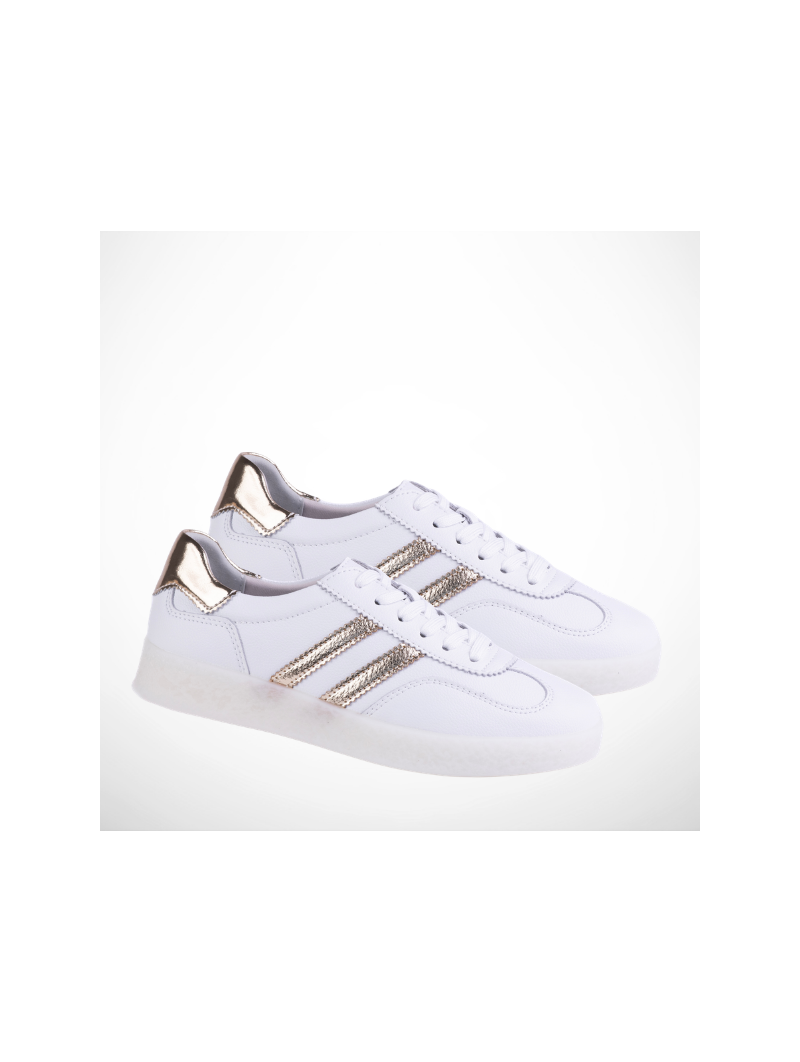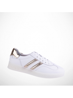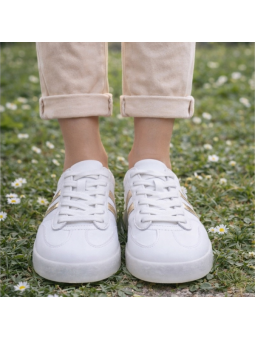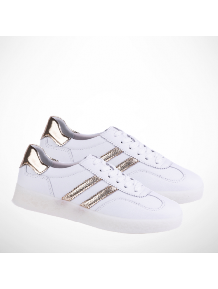Szukasz butów, które połączą styl, wygodę i jakość premium? Te damskie sneakersy - trampki ze skóry naturalnej to model, który pokochasz od pierwszego założenia! Naturalna skóra zapewnia odpowiednią cyrkulację powietrza, a miękka skórzana wkładka dopasowuje się do kształtu stopy. Buty są lekkie, nie obciążają nóg i sprawdzą się nawet podczas intensywnego dnia. To model, który łączy sportowy luz z eleganckim wykończeniem – subtelne złote detale dodają im wyjątkowego charakteru. Idealne na co dzień, do pracy, na spacer czy spotkanie z przyjaciółmi.