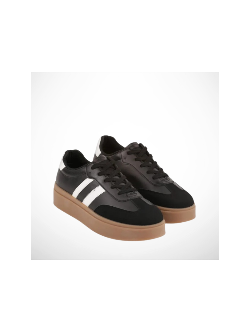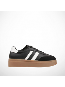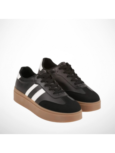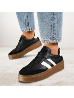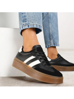Hit Sezonu ! Czarne Sneakersy Retro na Grubej Platformie z Eco Skóry.