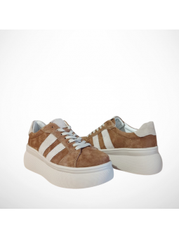 Beżowe Skórzane Sneakersy na Platformie - Styl i Komfort Premium.
