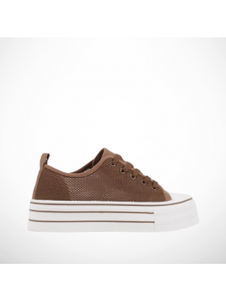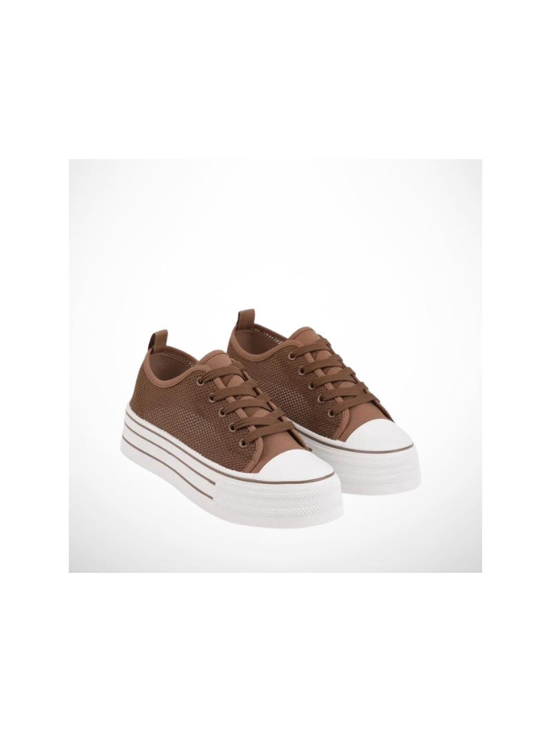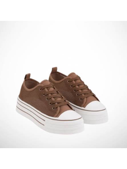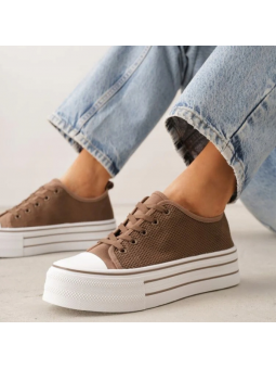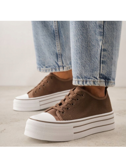 Brązowe Trampki Ażurowe Na Platformie - Lekkość i Styl!