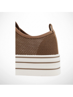 Stylowe brązowe trampki damskie sneakersy ażurowe z przewiewnej tkaniny na platformie 2368B