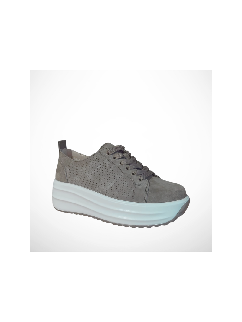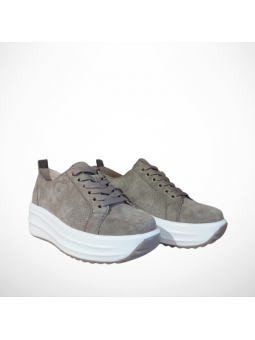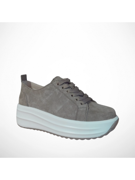 Lekkie beżowe sneakersy damskie z naturalnej skóry zamszowej i skórzaną wkładką na grubej podeszwie Goodin GDXW-1048