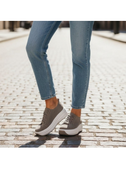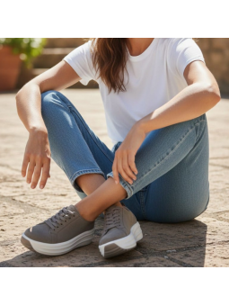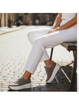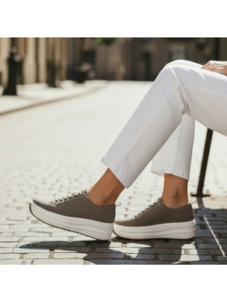 Jeśli szukasz obuwia, które połączy modny wygląd z codziennym komfortem, te sneakersy będą idealnym wyborem. Odcień beżu w zestawieniu z białą, solidną podeszwą tworzy nowoczesny i wyrazisty charakter, który świetnie wpisuje się w miejskie stylizacje.