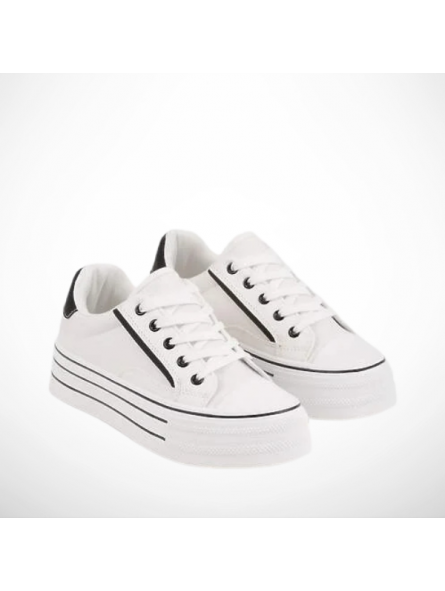 Stylowe biało-czarne trampki sneakersy z przewiewnej tkaniny na platformie 2346B