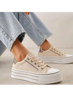 Beżowe Trampki Damskie Na Platformie-Twój Nowy Level Stylu !