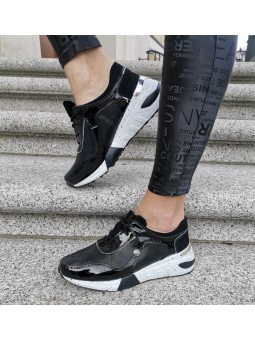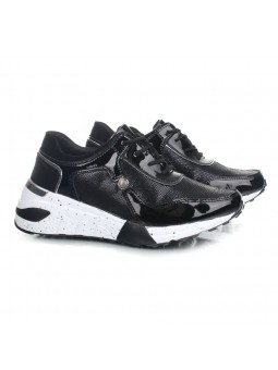 Czarne sneakersy na modnej, masywnej podeszwie to must-have w każdej nowoczesnej garderobie. Ich solidna, a zarazem lekka konstrukcja sprawia, że idealnie sprawdzają się zarówno na co dzień, jak i podczas weekendowych wyjść.