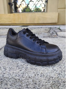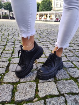 Czarne sneakersy z eko skóry na platformie sznurowane 7089