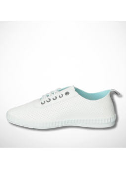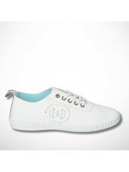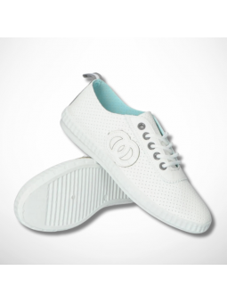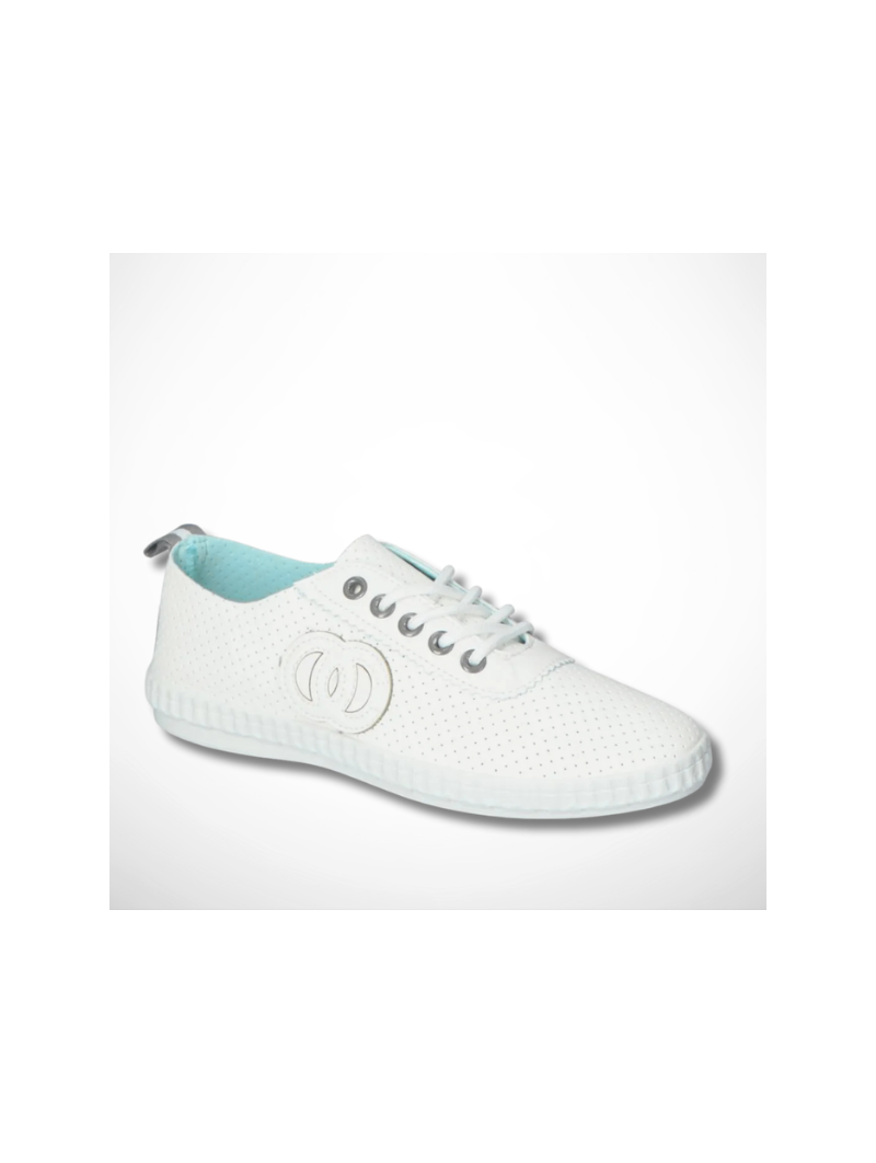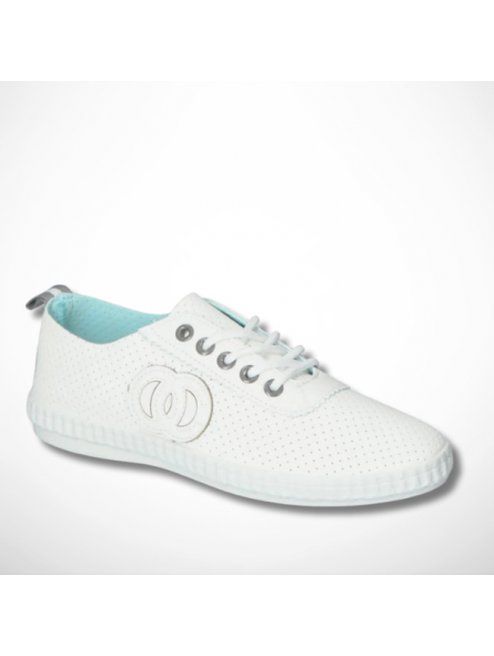 Klasyczne damskie białe trampki ażurowe z ekologicznej skóry na płaskiej podeszwie HC-9208
