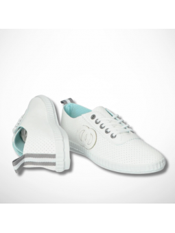 Sznurowane tenisówki damskie HC-9208 w klasycznym białym kolorze wykonane z miękkiej skóry ekologicznej- wygodne i funkcjonalne buty do wiosennych i letnich zestawień.