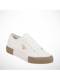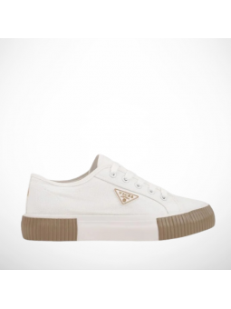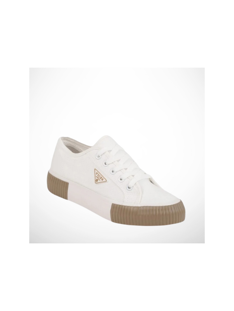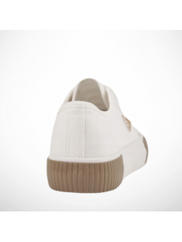 Te ponadczasowe trampki idealnie uzupełnią każdą codzienną stylizację. Model w klasycznym białym kolorze wyróżnia się minimalistycznym designem, które dodają mu charakteru. Kontrastowa, gumowa podeszwa w odcieniu brązu nie tylko świetnie wygląda, ale także zapewnia dobrą przyczepność i komfort podczas chodzenia.