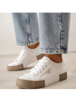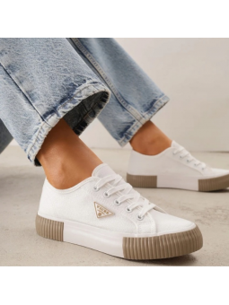 Klasyczne Biało-Beżowe Trampki Damskie na Żłobionej Platformie 2373B