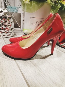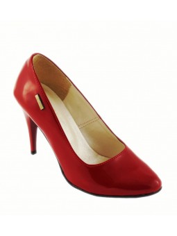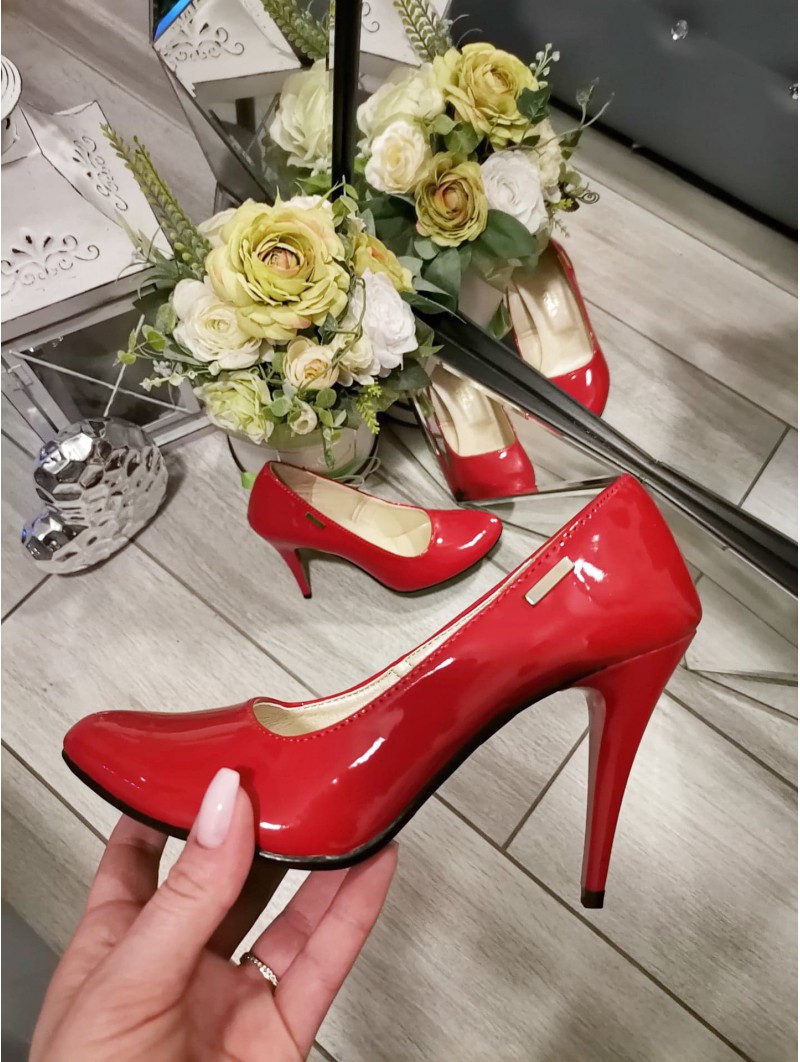 Czerwone czółenka damskie szpilki lakierowane z zaokrąglonym czubkiem 12-21
