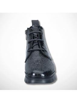 CZARNE LAKIEROWANE BOTKI SKÓRZANE WŁOSKIEJ FIRMY PIAZZA 990695-01 - to połączenie eleganckiego stylu z włoską starannością! Obuwie wykonane zostało ze starannie dobranych lakierowanych skór naturalnych , zachwyca swoją klasą i trwałością. Ocieplone lekkim futerkiem , zapewni przyjemne ciepło w chłodniejsze dni. Również ocieplona lekkim futerkiem wymienna wkładka w botkach pozwoli utrzymać odpowiednią higienę wewnątrz butów. Sznurowanie z przodu trzewików oraz wygodny zamek z boku ułatwiają wzuwanie obuwia , tworząc przy tym harmonijną całość.