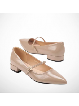 Eleganckie buty damskie typu balerinki z eko skóry i skórzaną wkładką na płaskim obcasie 2367B