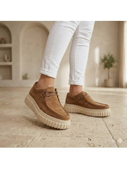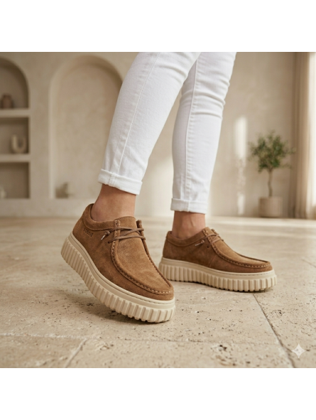 Szukasz butów, które łączą w sobie bezkompromisową wygodę z najnowszymi trendami ? Te damskie skórzane półbuty to idealny wybór dla kobiet, które cenią naturalne materiały i nowoczesny design. Wykonane z wysokiej jakości skóry zamszowej w pięknym , ciepłym odcieniu brązu, będą doskonałym dopełnieniem zarówno casualowych, jak i bardziej eleganckich stylizacji.